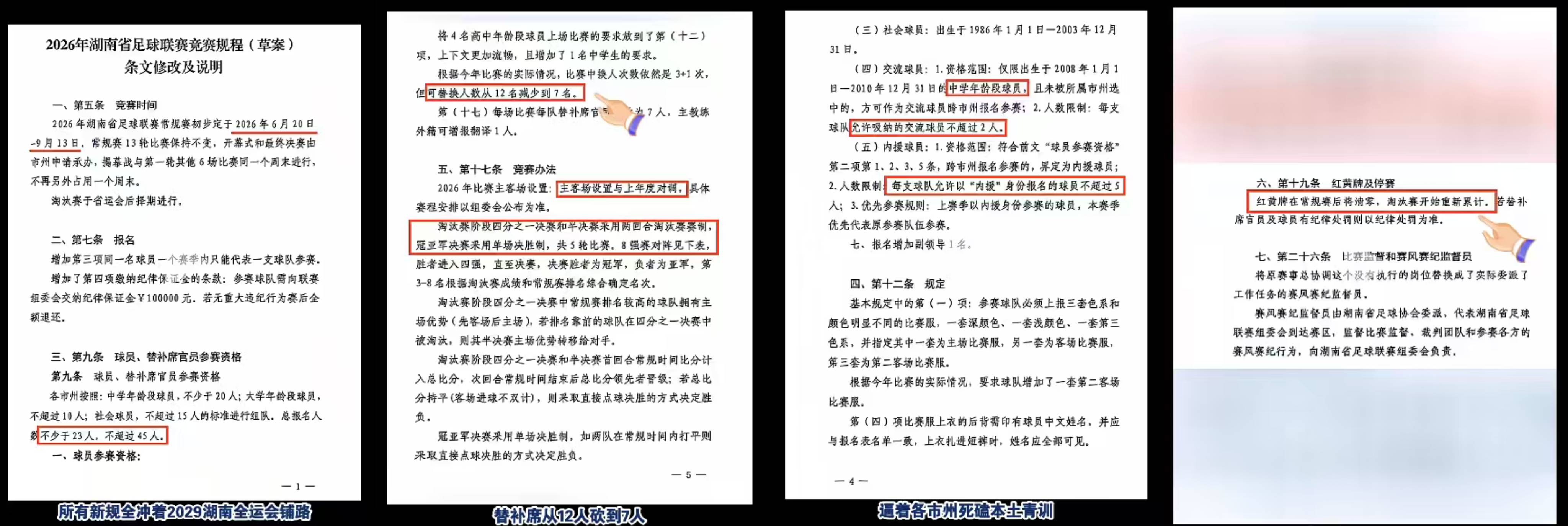 湘超联赛,湖南足球联赛,湘超赛程,湘超直播,湘超积分榜,湘超球队/湘超联赛为湖南足球迷提供最新赛程、实时比分、积分榜排名、球队信息和直播入口,掌握最新赛事动态,畅享足球激情。1月23日,2026湖南省足球联赛(简称“湘超”)竞赛规程草案在网络流传,引发湖南球迷热议。草案涉及球队引援、累计得牌、替补人数等多项机制调整。潇湘晨报·晨视频记者当日求证省体育局,相关负责人表示,草案尚未定稿,提醒球迷以官方发布为准。同时,官方也对部分球迷提出的优化建议作出了回应。